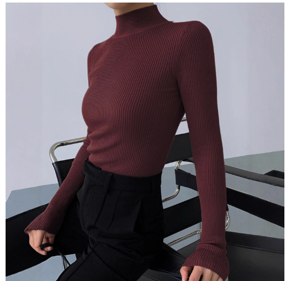 Women’s Knitted Crew-Neck Top – Slim Fit Sweater