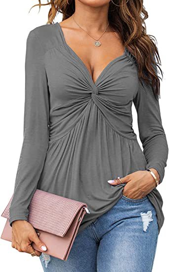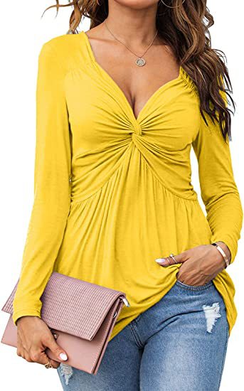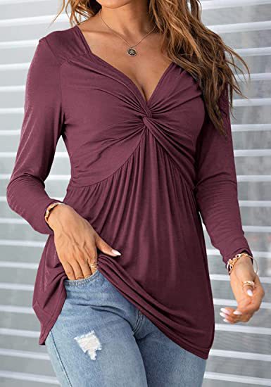 Womens V-neck Front-tie Blouse With Long Sleeves And A Pullover Design